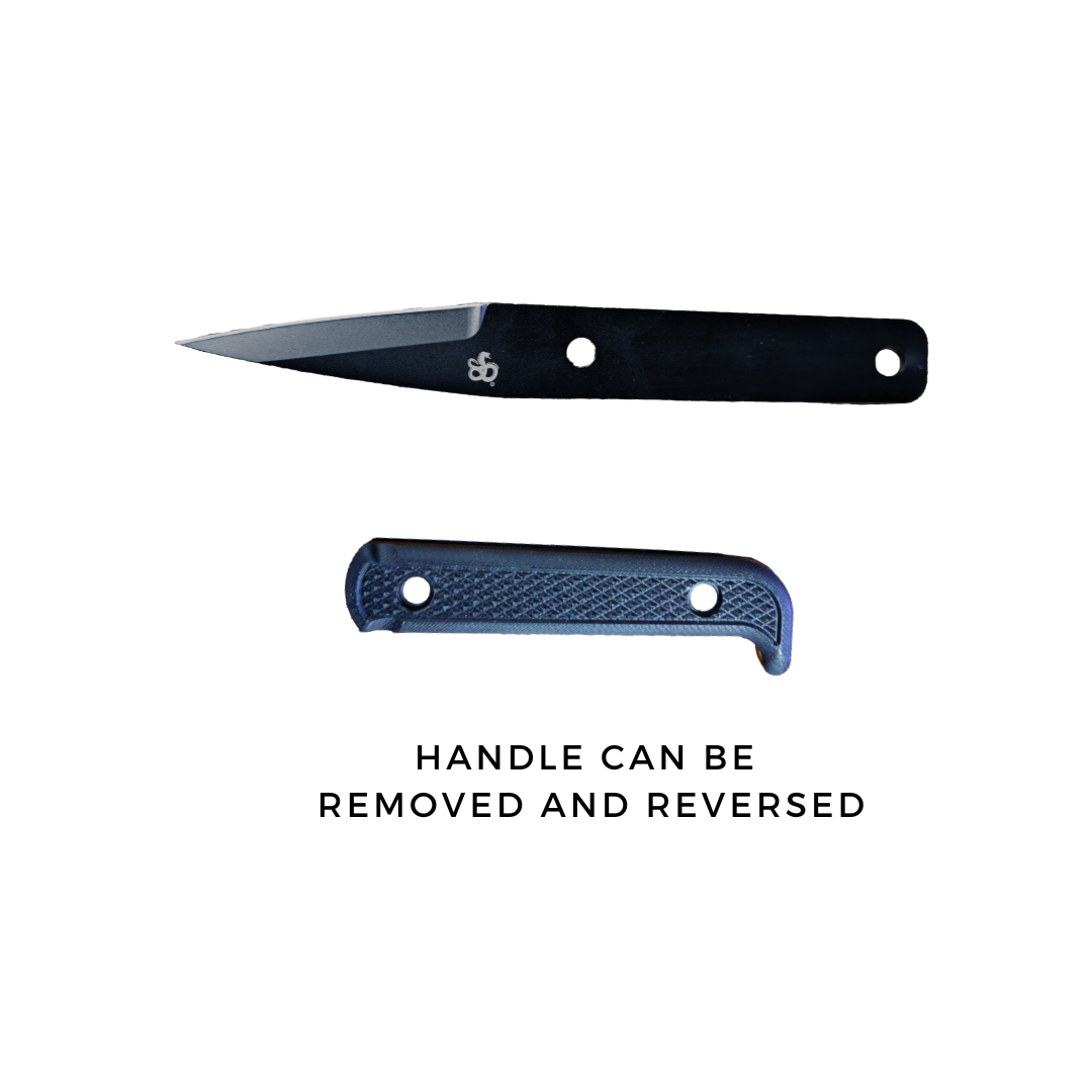 Symmetrical Handle allows for versatile grip configurations. This also allows the handles to be reversed to change from reverse edge to forward edge.