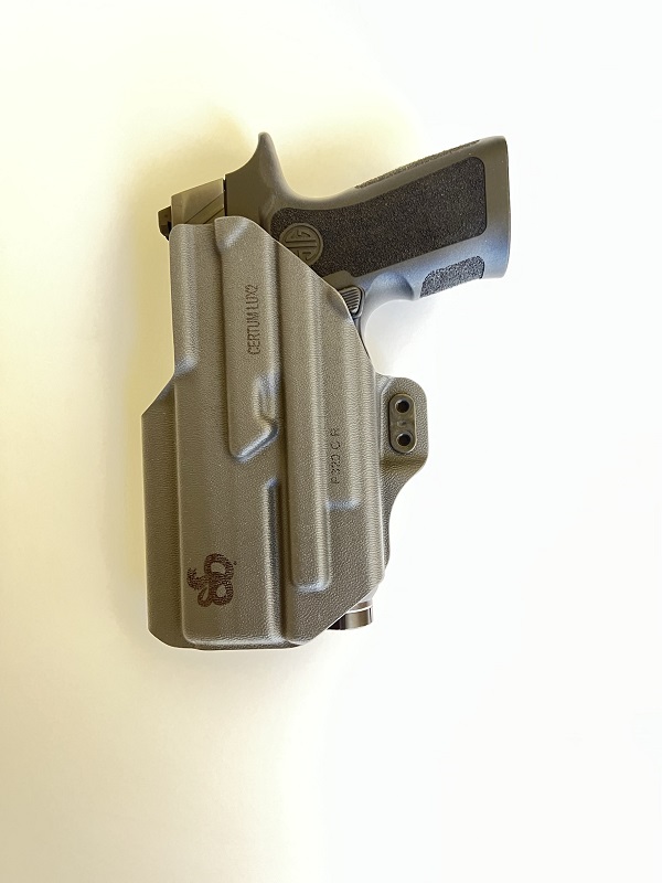 UNIVERSAL LIGHT FIT | The CERTUM LUX2 is compatible with a variety of compact weapon lights: the Streamlight TLR-7/TLR-7A, Surefire XC1-B, XC2, Inforce APLc, Olight PL-Mini, PL-Mini 2, and the Nightstick TCM-550XL. (Not compatible with TLR8 or BALDR.) Retention is not dependent on the light, so the holster works without a light as well.