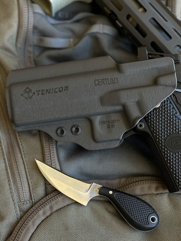 Tenicor / Shivworks collaboration. After seeing many other holster/belt clips being torn off and broken from an entanglement, Craig wanted a holster/belt loop combination that was more robust. Working with Jeff from Tenicor and Discrete Carry Concepts a new metal T1 closed belt loop was designed and added to the Tenicor holsters. The Certum3 is one of the most versatile holsters on the market which can be worn IWB (inside the waistband hip carry) or AIWB (appendix inside the waist band). Some customers find the Certum3 more concealable and comfortable with the Teardrop Muzzle Pad foam which presses the grip against your body.