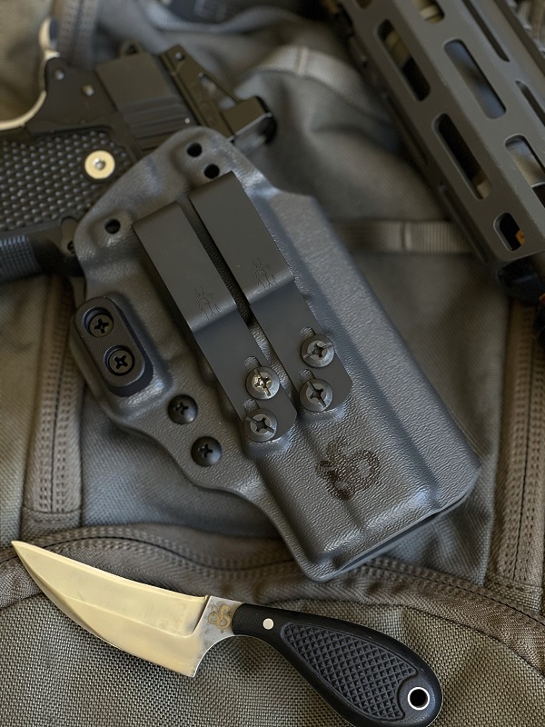 Custom gray kydex with Shivworks logo and new bomb proof DCC metal belt loops.