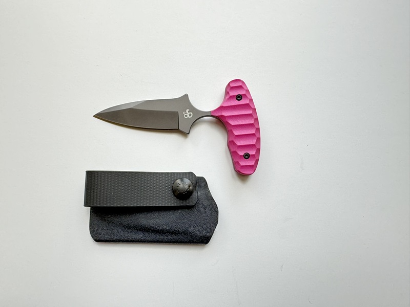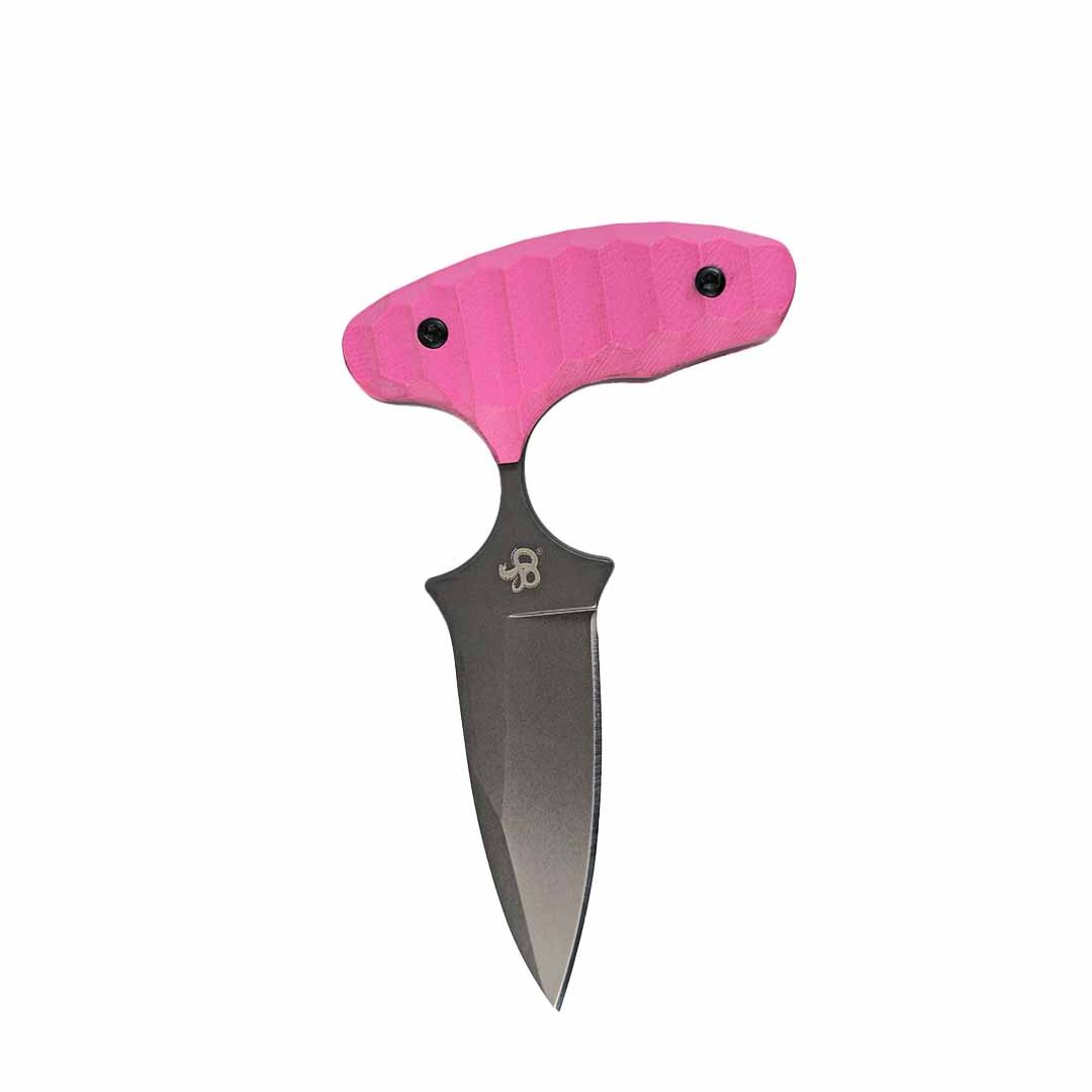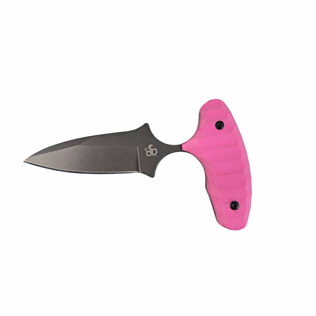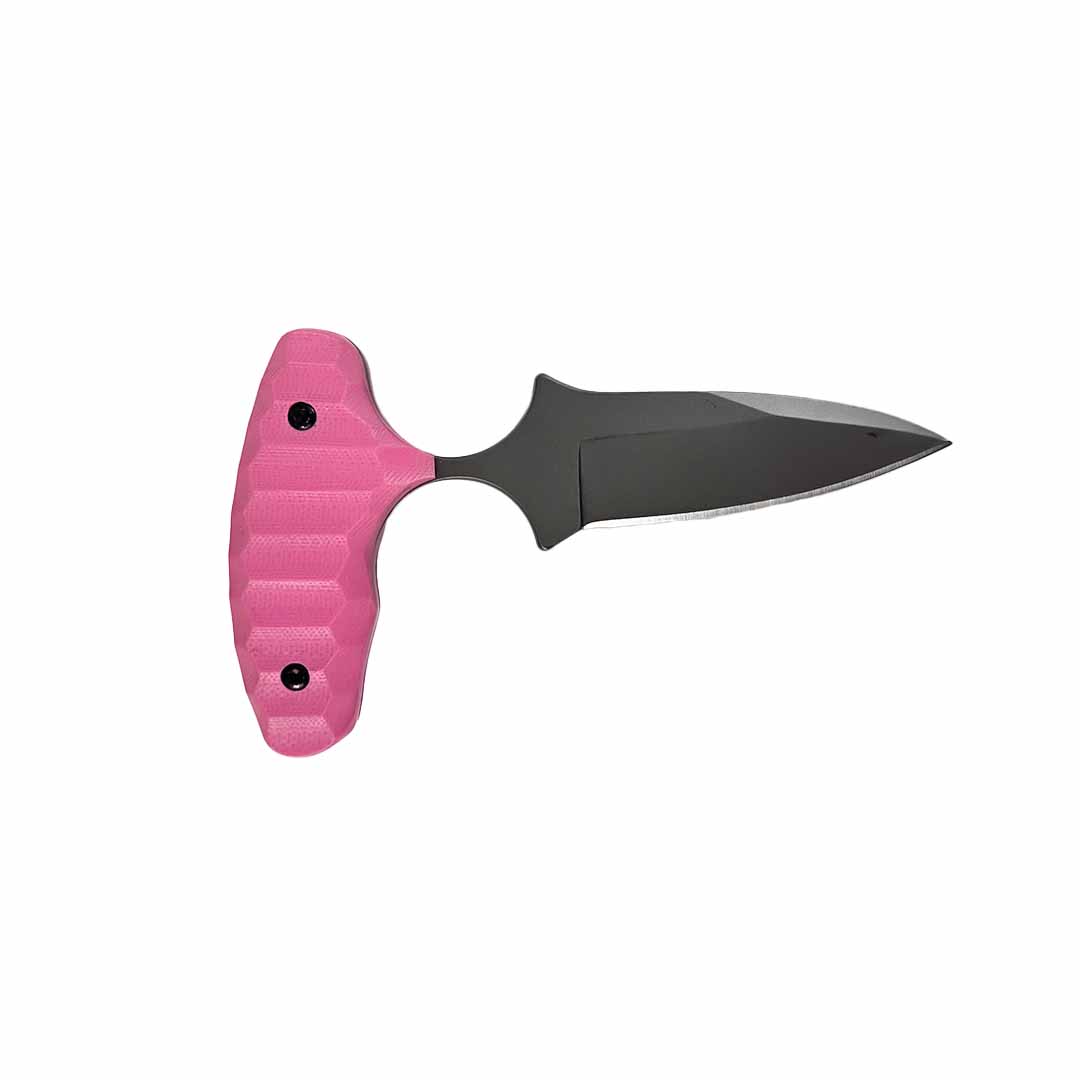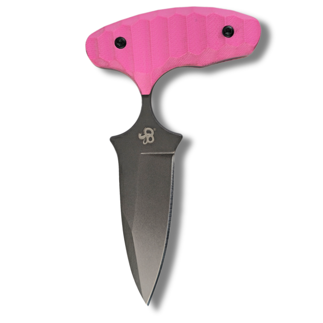 The blade is made from Sandvik 12C27 steel for superior corrosion resistance and uses a reduced-size G10 non-slip PINK handle. The design prevents in-hand rotation even with extreme impact. The ideal neck length is what minimizes self-injury during real-world situations. Our La Nina is designed for performance; it’s not based on a looks cool image.