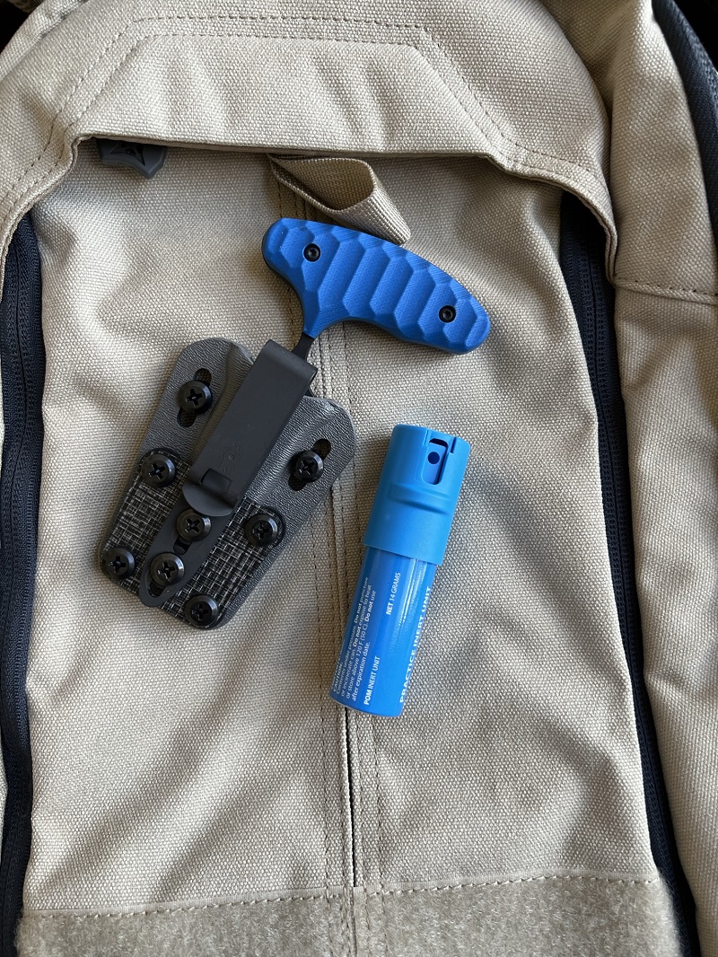 Note: The Unit comes with a blue flip-top canister filled with pressurized water. Same size and form factor as the clip/key chain Pepper Spray unit.