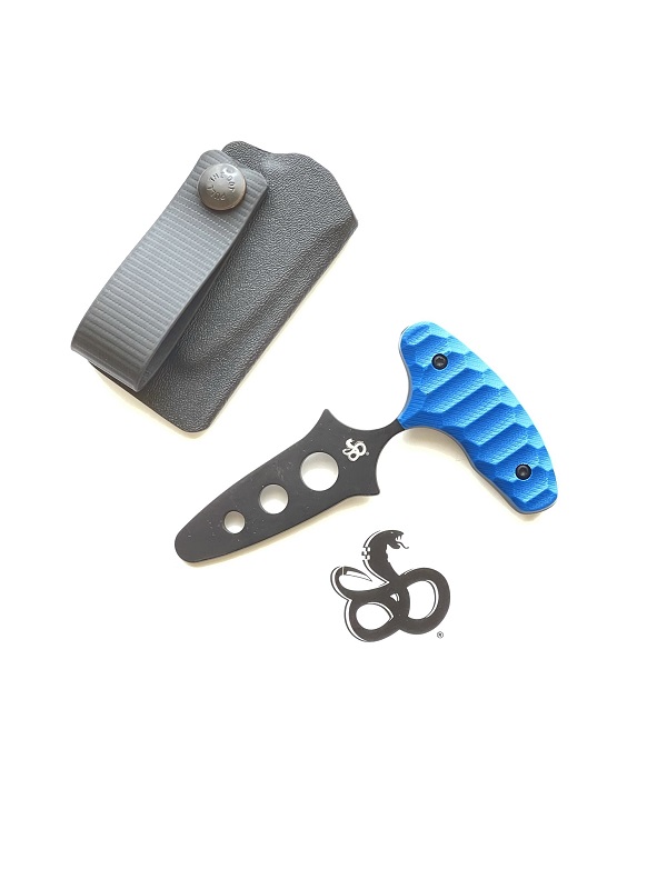 The El Nino was designed to be a small effective blade that could be concealed and easy to use with minimal training.   The smaller handle reduces weight for concealability and comfort.   Sheath design is as important as the knife when it comes to daily carry.  The El Nino BLACK & BLUE Trainer comes with the standard BELT LOOP. The El Nino is the perfect companion for low vis environments , when you go to the gym, or where a larger knife is not feasible.