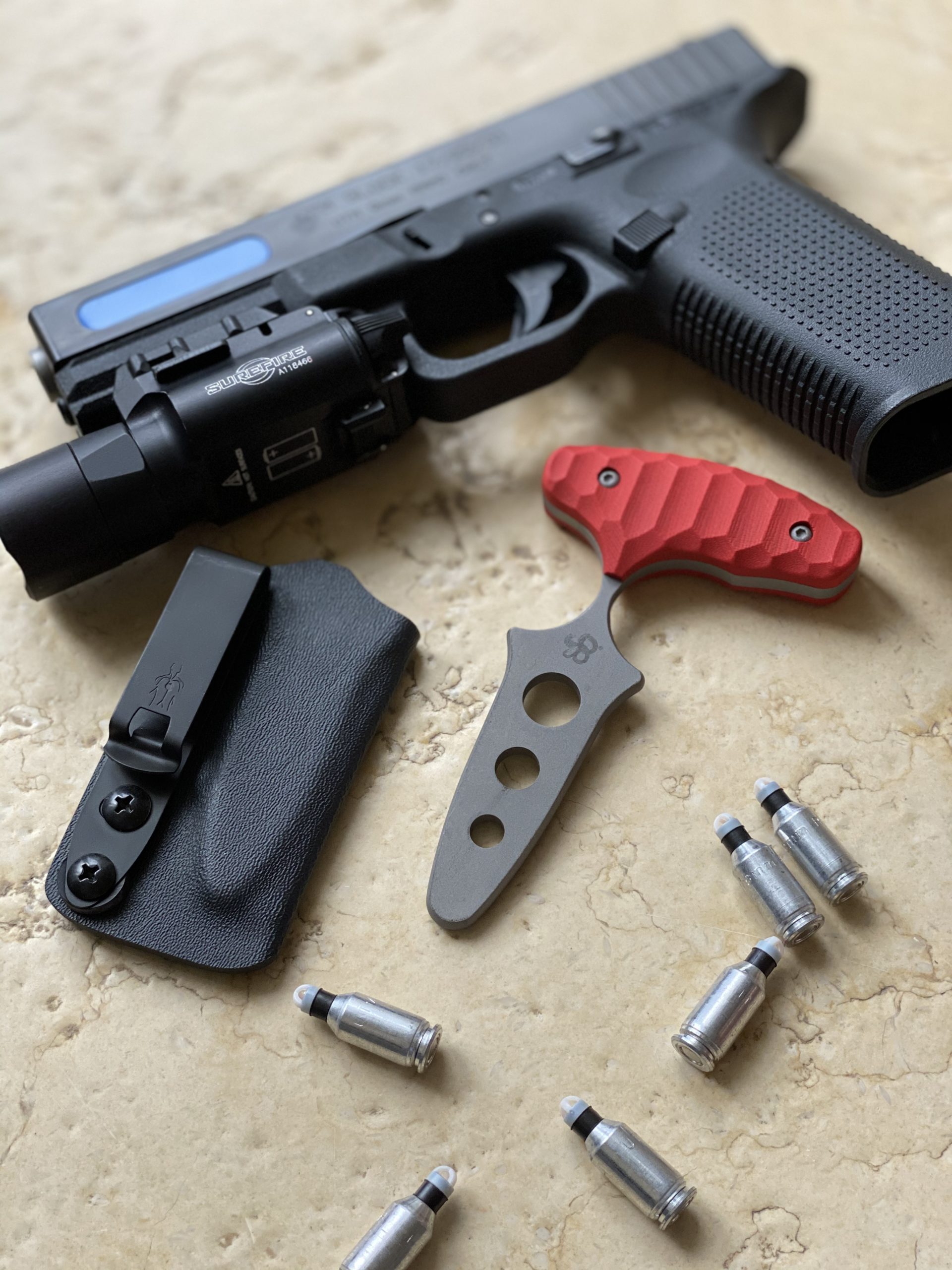 Training tool was designed to complement your training without a live blade and to mimic live blade carry to work in fight access without fear of cutting or puncturing your training partner.  IT IS NOT for striking, or hitting people during training as doing so may cause significant injury even with a blunt metal tip.